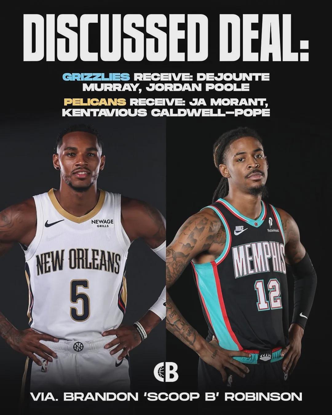 近日美记ScoopB报道称,鹈鹕非常积极追求莫兰特,并与灰熊讨论了多个交易方案,如下: